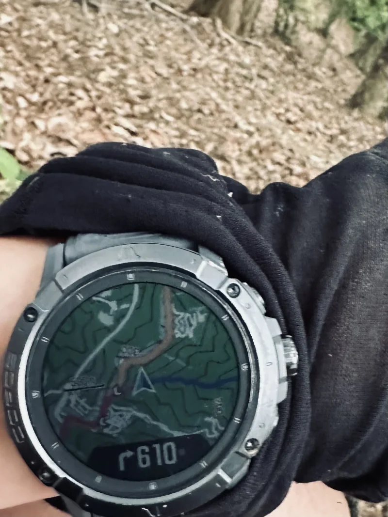 仮に踏み跡が容易に判別できない難しい道として、その人間の目による判断をカバーするのがGPSです。現代のスマホやGPSウォッチは専門的な測量機械に劣るとはいえ一般人が登山をするに十分な精度を持ったものです。