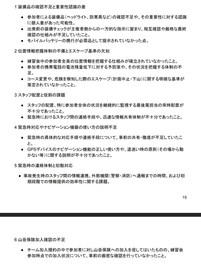 一方で、最終的に自らが起こしてしまった現実に向き合い欠落していた点から改善を見出し、現実的にこれからの遭難対策に有効と思われるであろう報告書として私はこの度の文書を拝見いたしました。